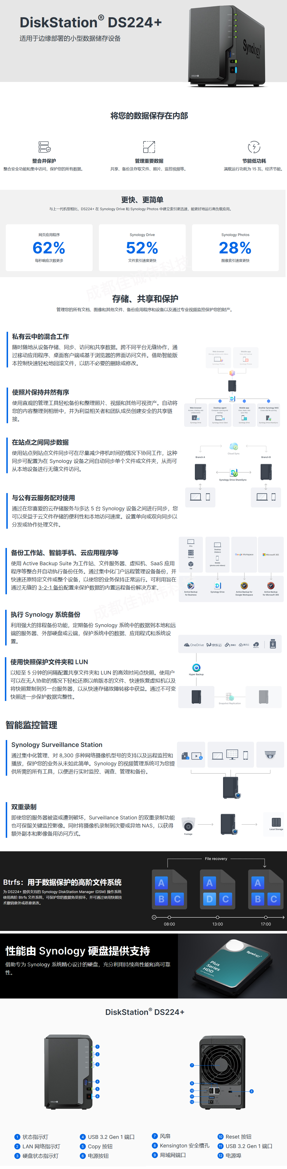 群晖synology DS224+ 2盘位NAS网络存储服务器 私有网盘 文件共享主机,备份主机,成都群晖总代理,成都群晖NAS存储代理商。