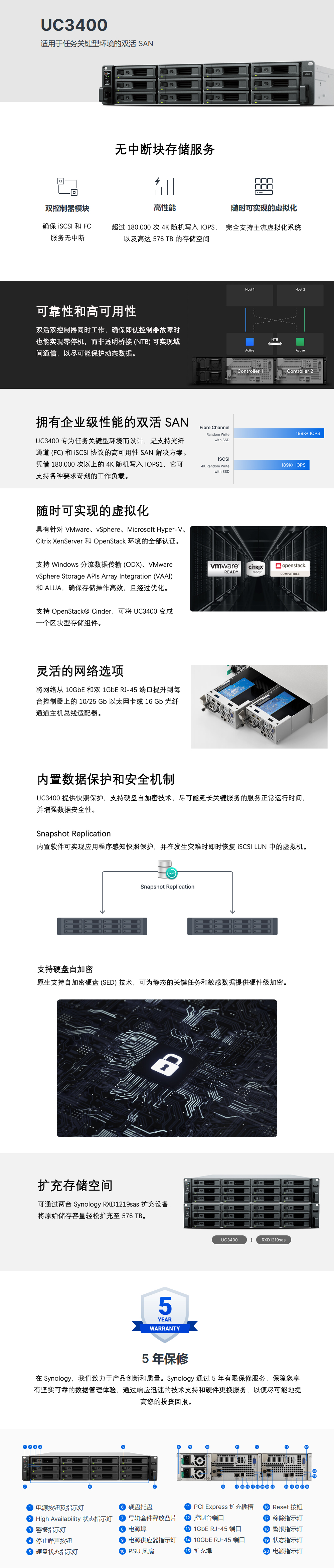 【四川成都群晖存储代理商】群晖UC3400双活SAN存储适用于任务关键型环境,UC3400 专为任务关键型环境而设计,是支持光纤通道 (FC) 和 iSCSI 协议的高可用性 SAN 解决方案。