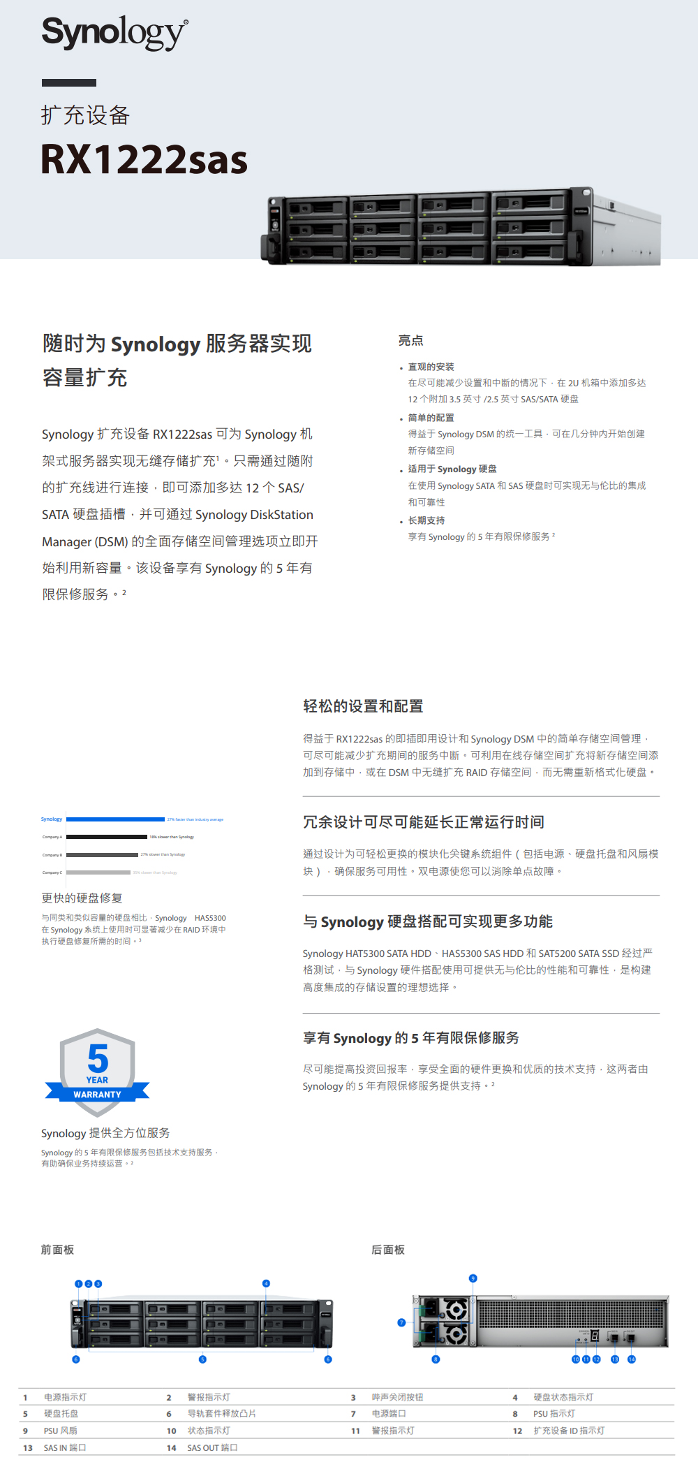 群晖RX1222sas存储扩展柜,适用于 Synology 服务器的即插即用容量扩充,成都群晖总代理